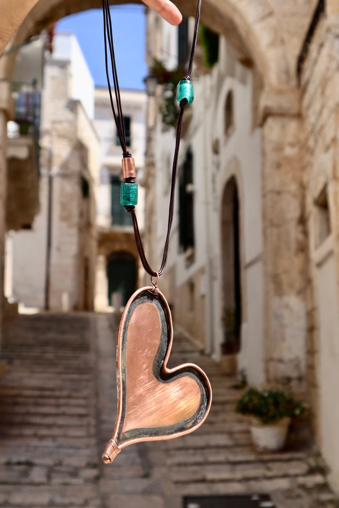 Collana a forma di cuore in lamiera di rame