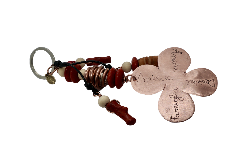 QUARTIERI Portachiavi con piastre in rame , vetro di murano e pietre dure