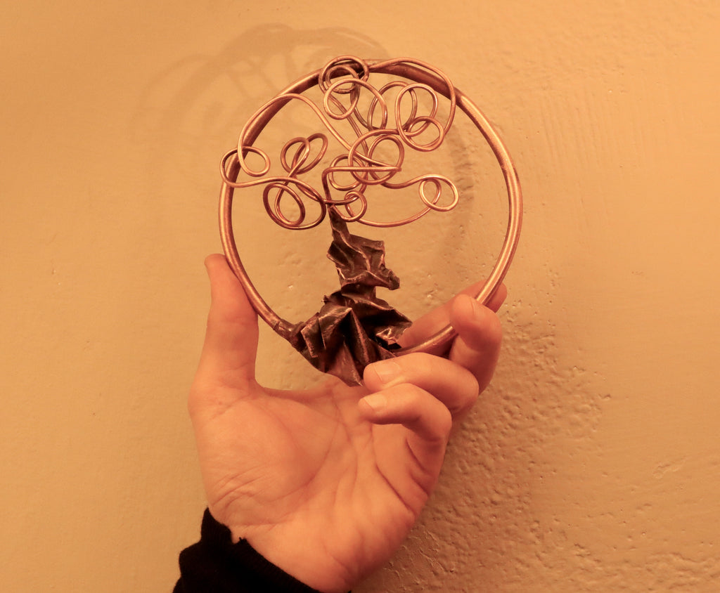 Ulivo realizzato con tubi, lamiera accartocciata e filo di rame. Prodotto Made in Italy realizzato interamente da Quartieri in unici esemplari con possibilità di realizzarlo in svariate dimensioni 2020.