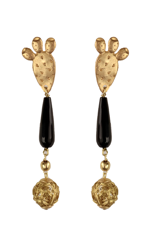orecchini con gancio a chiodo forma di fico d'India e sospensione pietre dure.